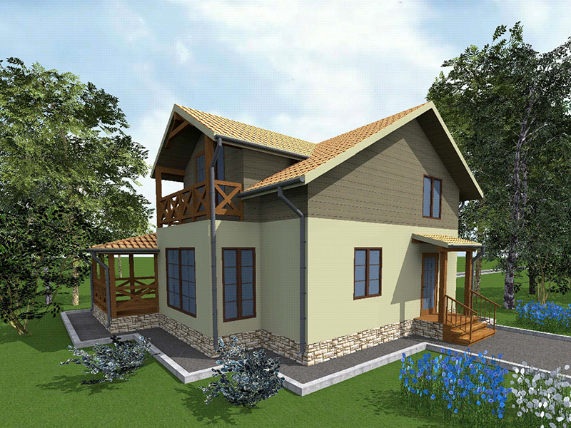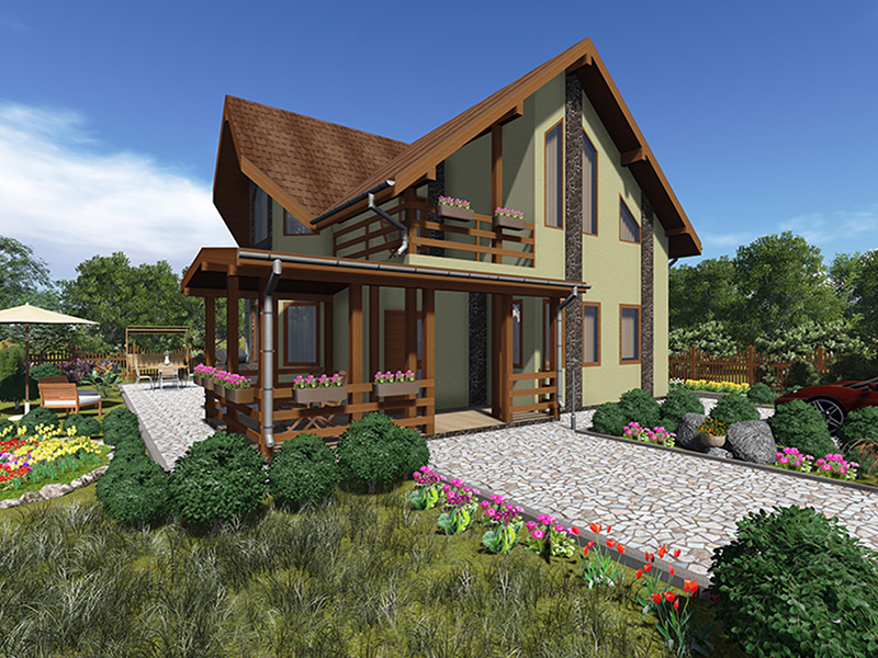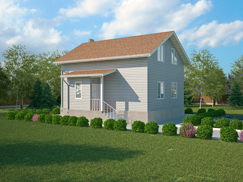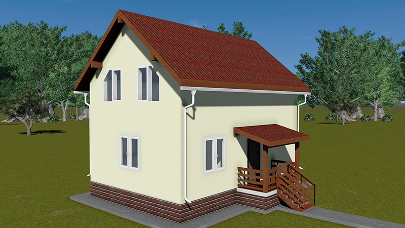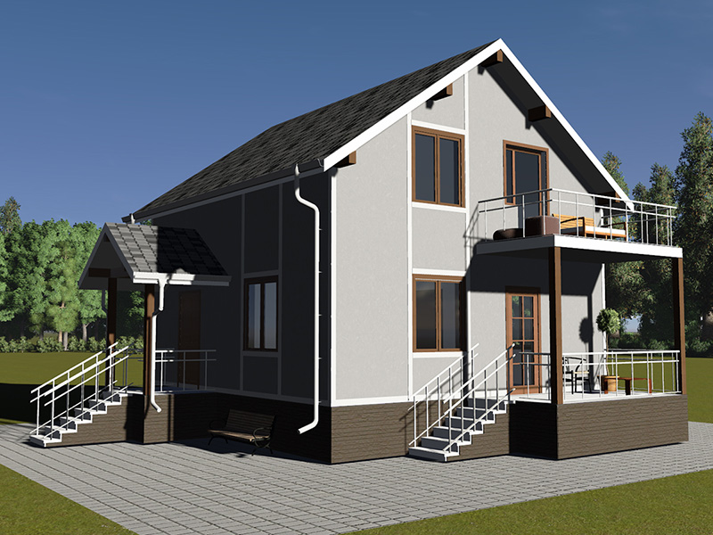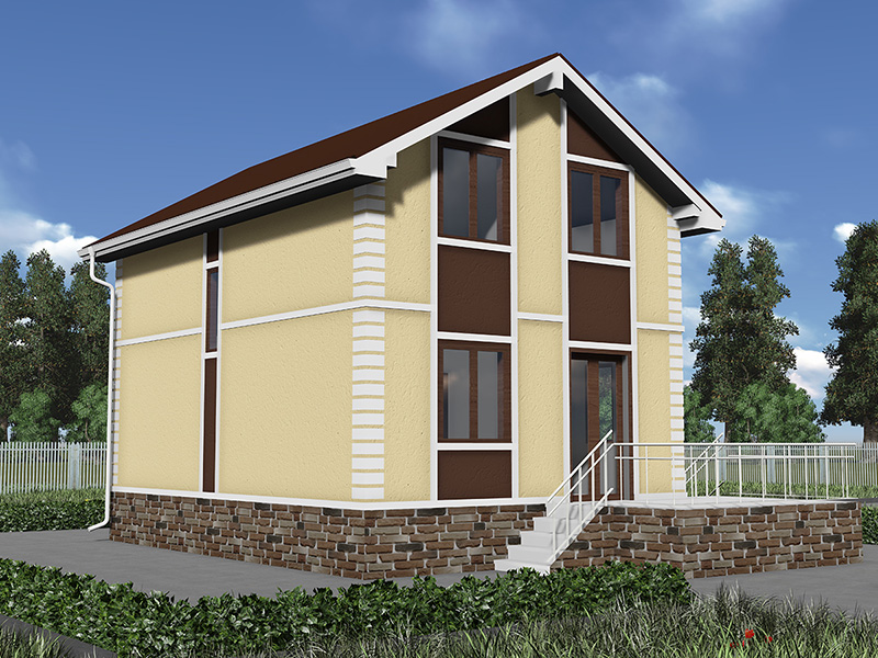 Простой в строительстве дом с двускатной крышей, подойдет, также, для узкого участка.