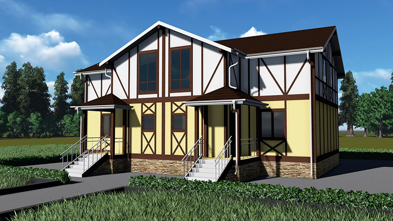 Современный просторный проект дуплекса для проживания двух семей.